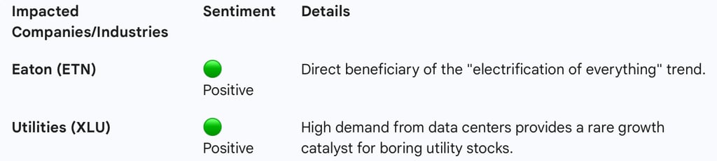 While Nvidia grabs the headlines, Eaton (ETN)—a power management giant—announced yesterday it will double its manufacturing capacity in Virginia to meet insatiable demand from data centers. As AI chips get faster (and hotter), the infrastructure to power and cool them is becoming the new bottleneck.